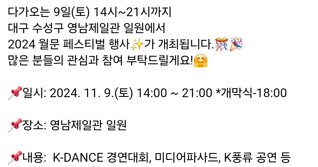 장소 : 대구 중구 동성로 28아트스퀘어 특설무대