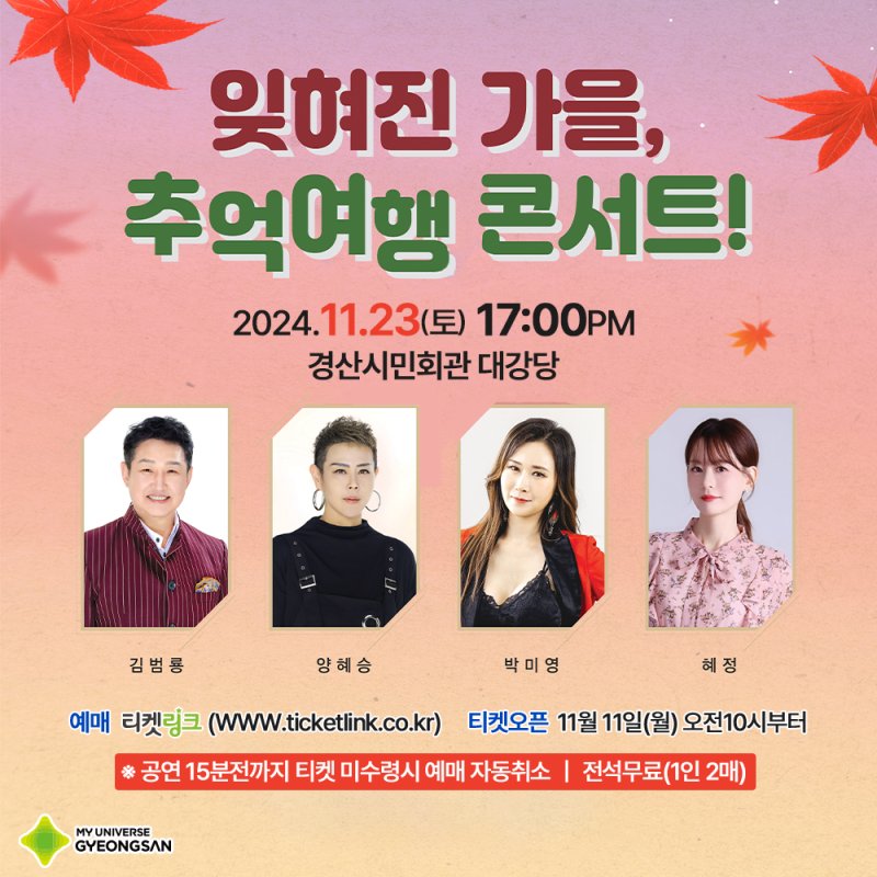 64.경산 잊혀진 가을, 추억여행 콘서트(11.23)11.11~사전