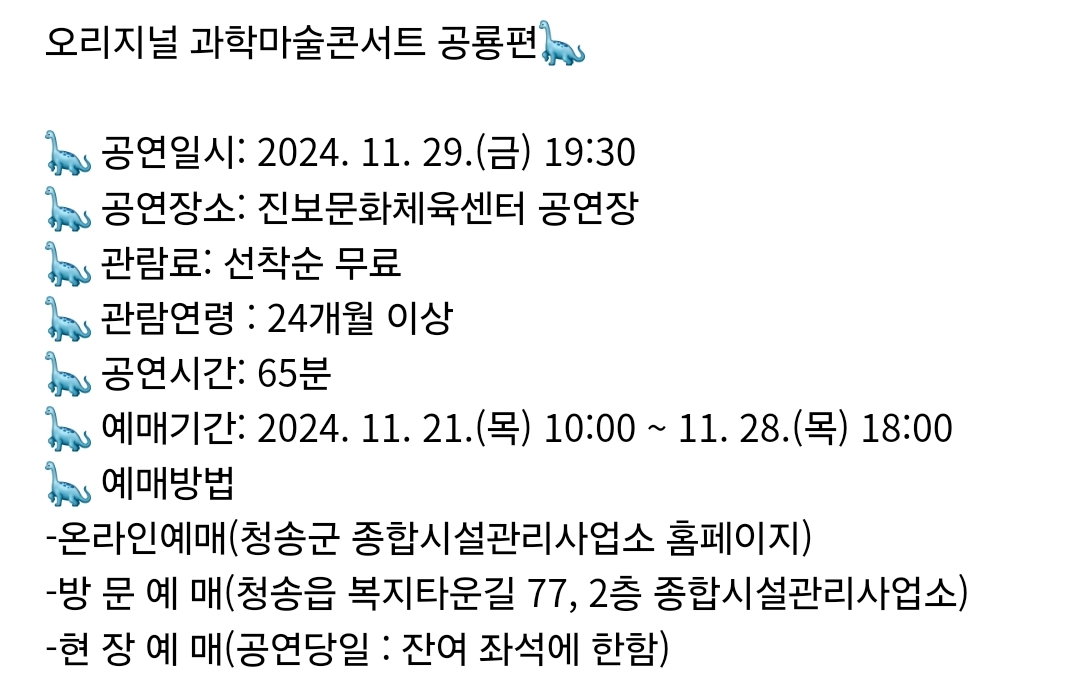 69.청송 오리지널 과학마술콘서트 공룡편(11.29)사전,현장