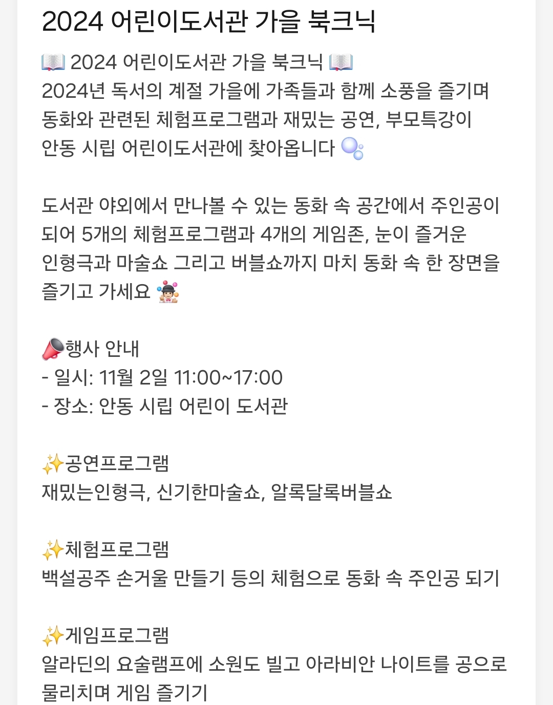 15.안동 어린이도서관 북크닉(Book Picnic)(11.2)