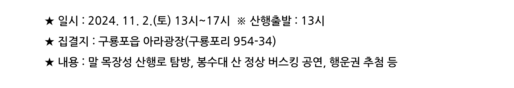일시 : 2024.11.1(금) 오후 5~7시