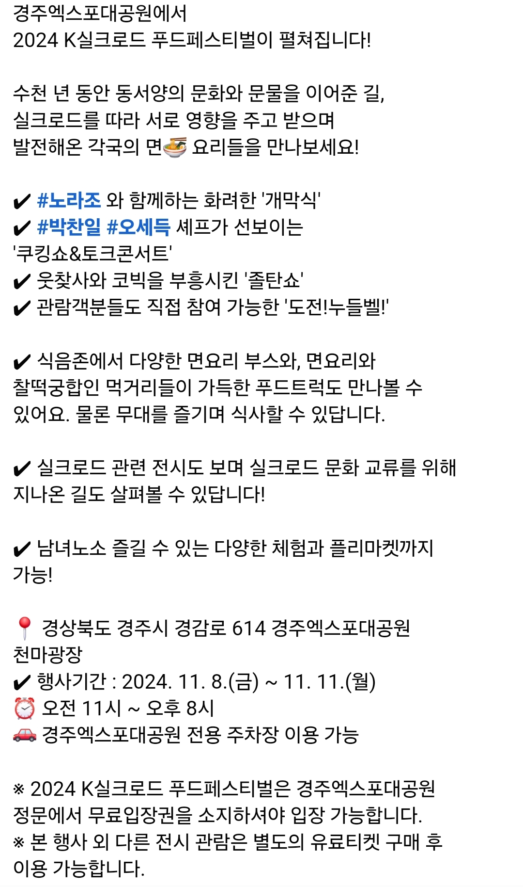 30.경주 엑스포대공원 K실크로드 푸드 페스티벌(11.8~11)