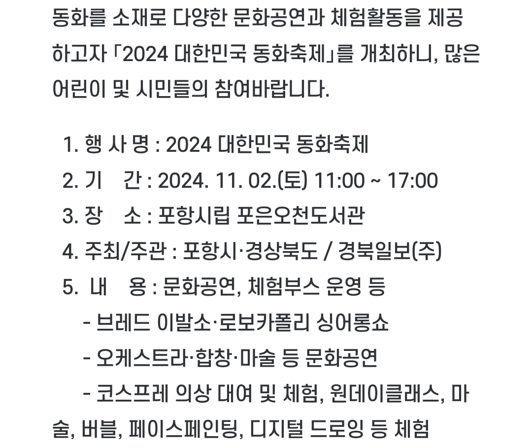 24.포항 대한민국 동화축제(11.2)