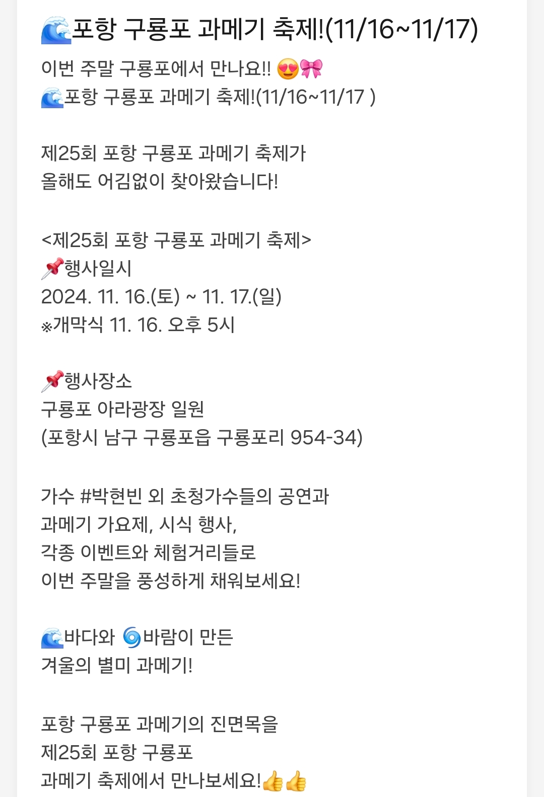 장소 : 포항시 구룡포 아라광장 일원