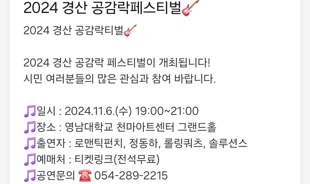 26.경산 공감락 페스티벌(11.6)티켓링크 예매필