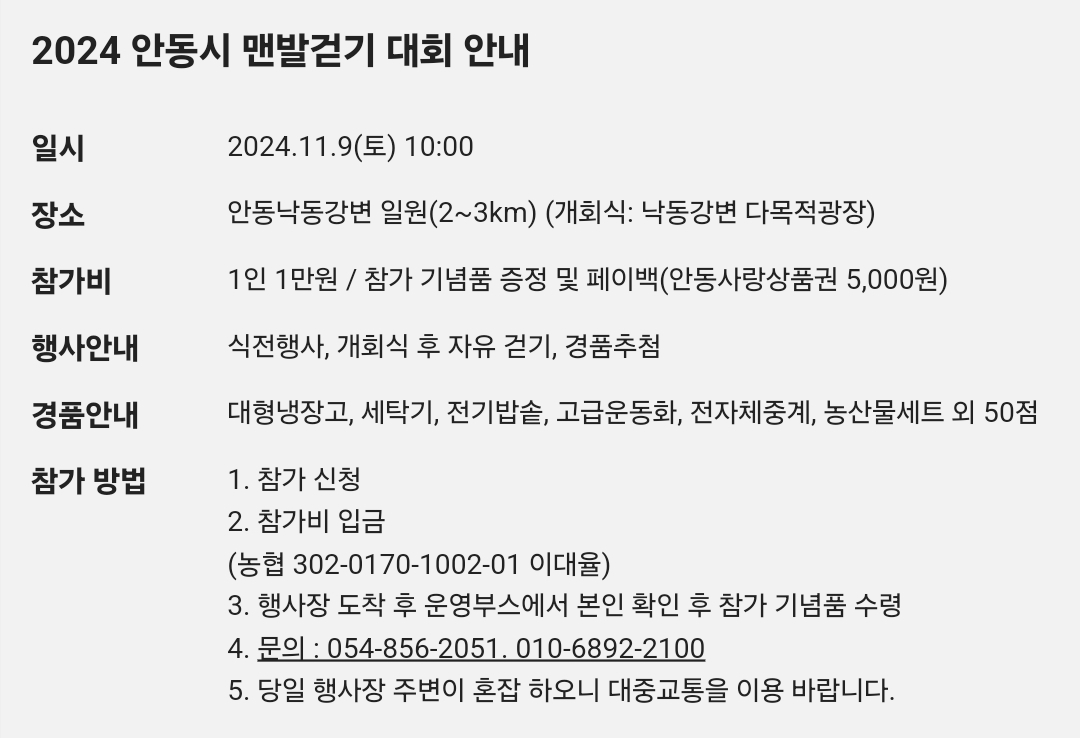 43.안동 맨발걷기대회-맨발로 룰루랄라(11.9)참가비1만
