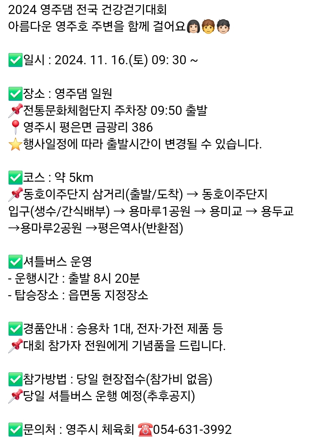 57.영주 건강걷기대회 영주호 갈래?(11.16)