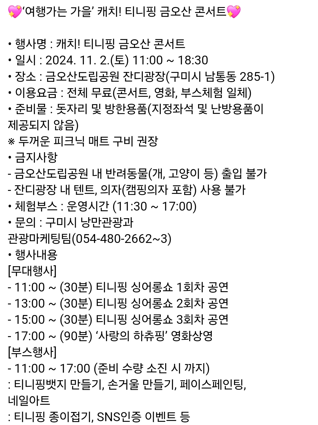 10.구미 캐치! 티니핑 금오산 콘서트(11.2)