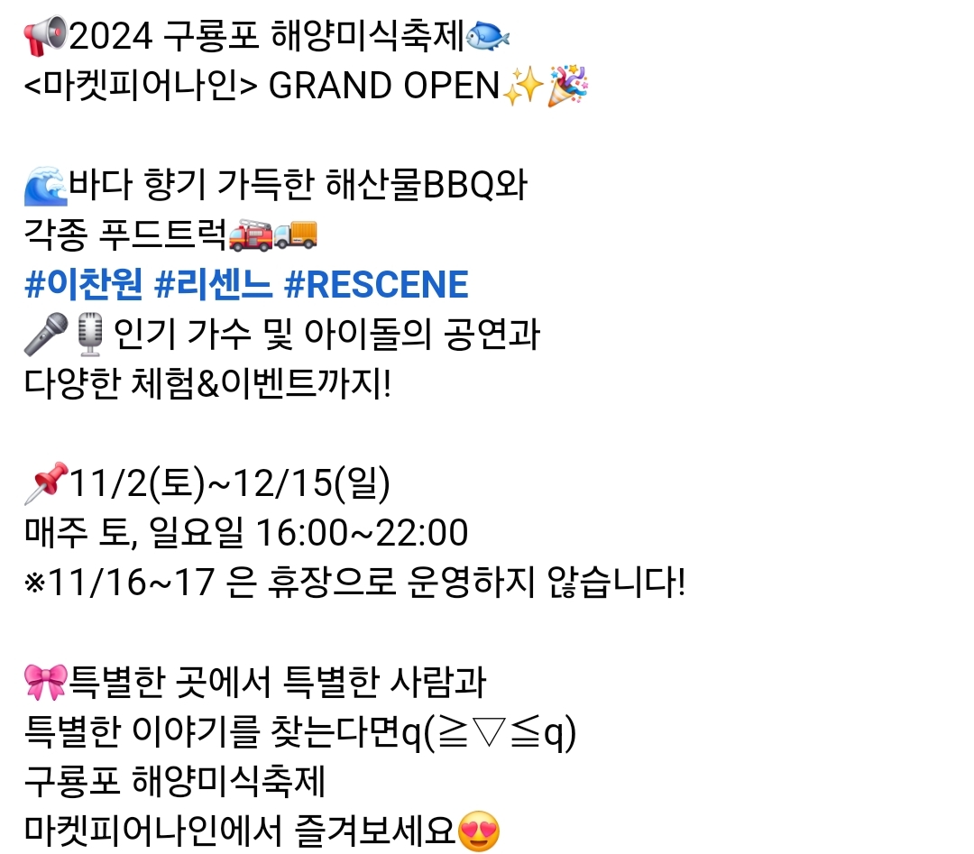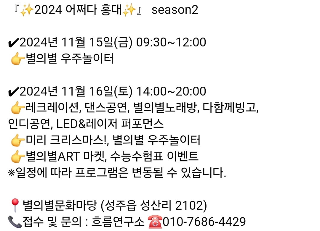 일시 : 2024.11.22(금) ~ 11.24(일) 오후5:00~10:00